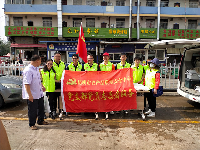 7月22日上午昆明市农产品质量安全中心莅临市场开展农产品质量安全知识普及、农产品质量安全法律法规知识及监管、绿色(有机)食品宣传活动。