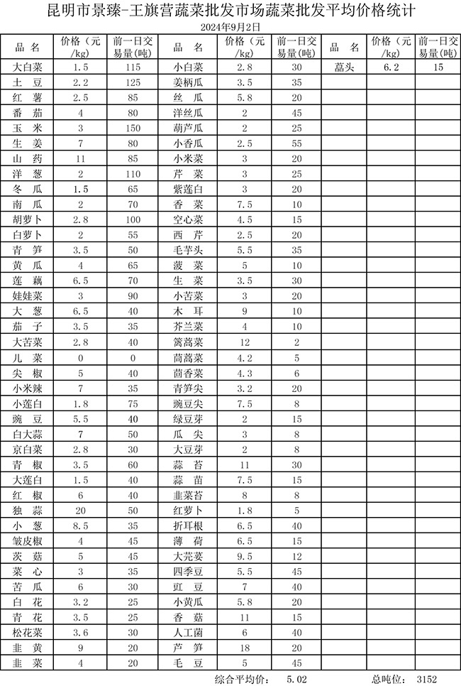 • 市场平均价格统计2024年9月2日