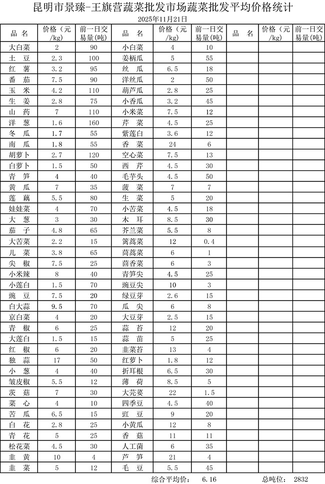 • 市场平均价格统计2025年11月21日