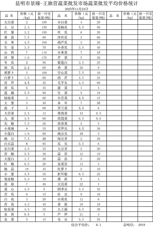 • 市场平均价格统计2025年11月24日