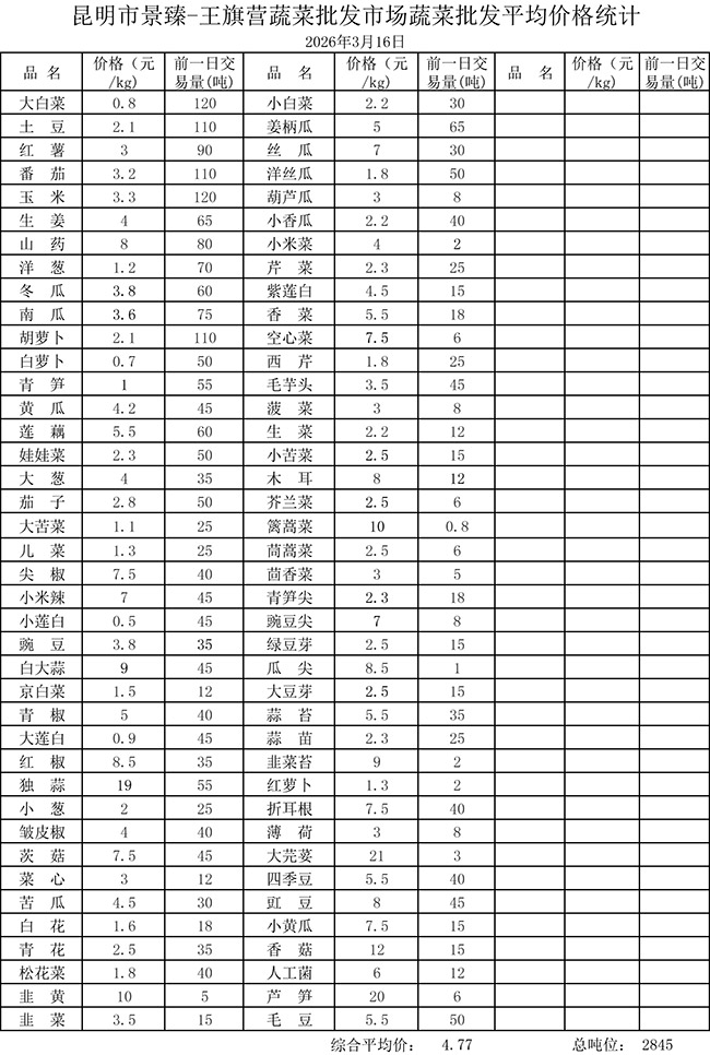 • 市场平均价格统计2026年3月16日